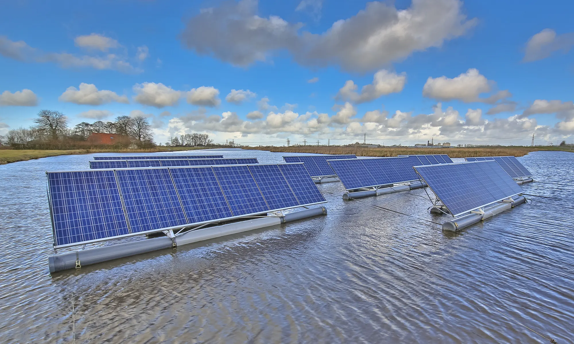 Innovative Nutzung von Wasserflächen zur effizienten Stromerzeugung – flächenschonend, leistungsstark und ökologisch sinnvoll.